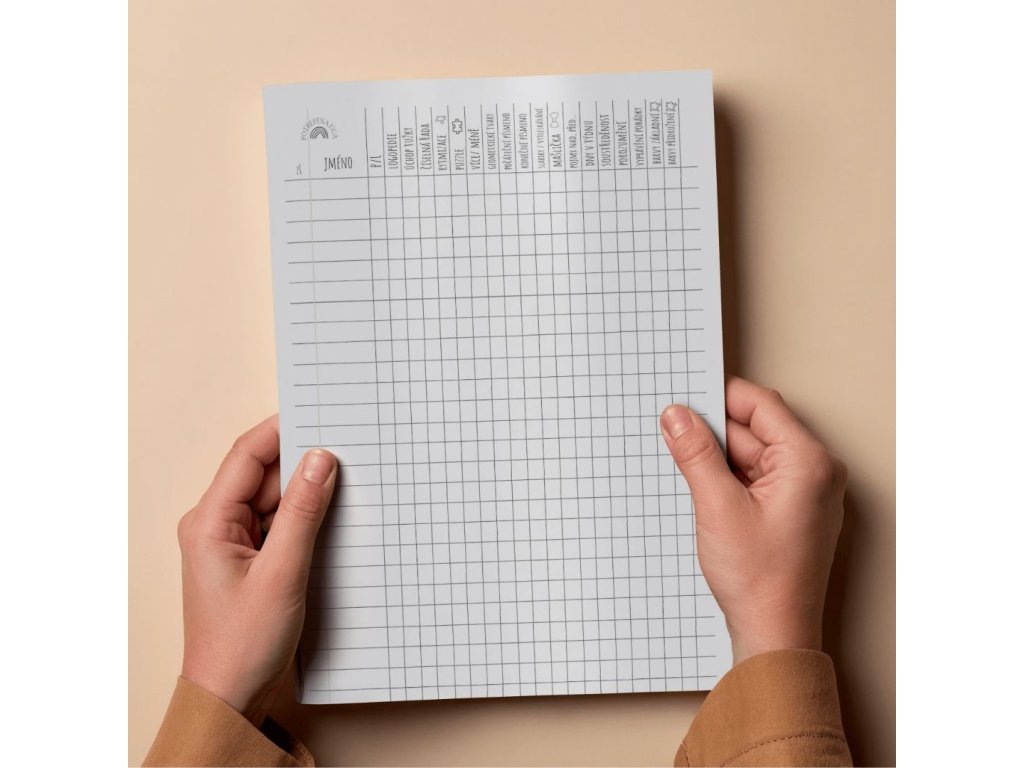 Tenhle záznamový arch ti dá systém bez složitostí. Jasný, přehledný, funkční. Stačí jeden pohled a víš, na čem s dětmi jsi.